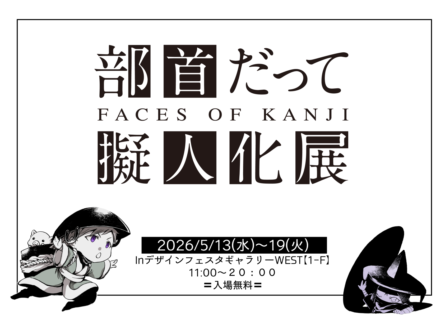 この展覧会では、あなたが選んだ部首キャラクターが展示されます。